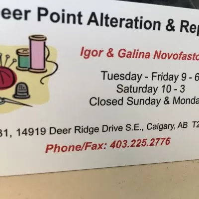 At Deerpoint Alterations & Repair, we bring years of tailoring expertise to clients in Calgary from our convenient location at 14919 Deer Ridge Dr SE. Whether you need clothing alterations or garment repair, our skilled hands ensure each piece is treated with care and precision. We pride ourselves on reliability, attention to detail, and a personal approach to every project. Trust us for meticulous, timely service that meets your highest expectations, helping you look and feel your best every time you visit. see more detail