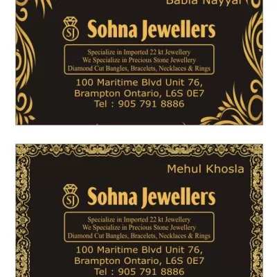 Welcome to Sohna Jewellers, your trusted destination in Brampton for exquisite fashion jewellery and timeless elegance. Located at 100 Maritime Ontario Blvd #76, we pride ourselves on offering a handpicked selection of stunning pieces that cater to every style and occasion. Our dedicated team is committed to providing exceptional customer service, ensuring every visit is memorable. Discover distinctive designs and unparalleled craftsmanship at Sohna Jewellers, where every item celebrates beauty and sophistication. Visit us today for a truly impressive jewellery experience right here in Brampton City Centre. see more detail